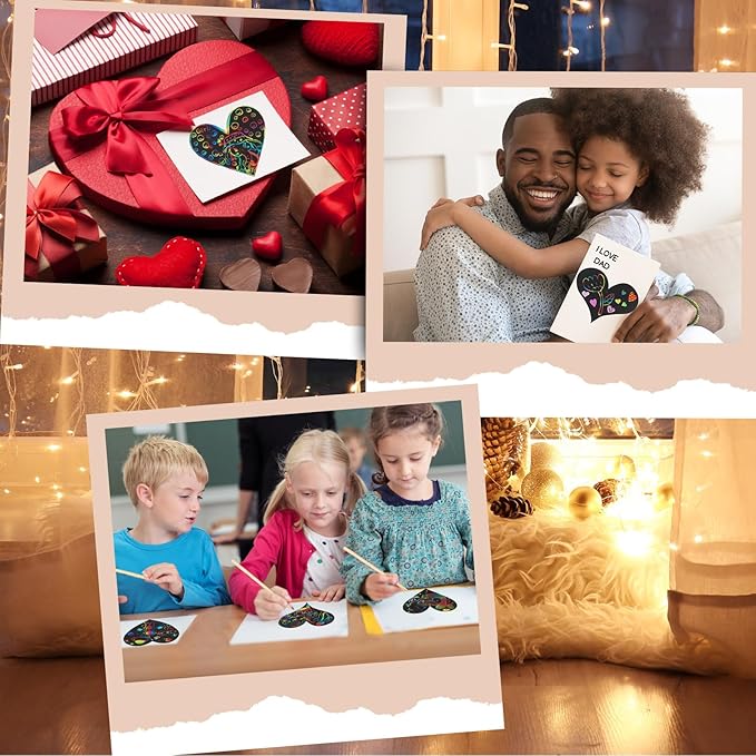 - Bring Kids More Fun: the scratch hearts are printed with some funny words, with a combination of rainbow colors and heart shapes, lovely and appealing, you can use these sticks to scratch, and get pretty patterns, last you will get sincere gift cards for gift box decoration, offering kids a lot of DIY fun