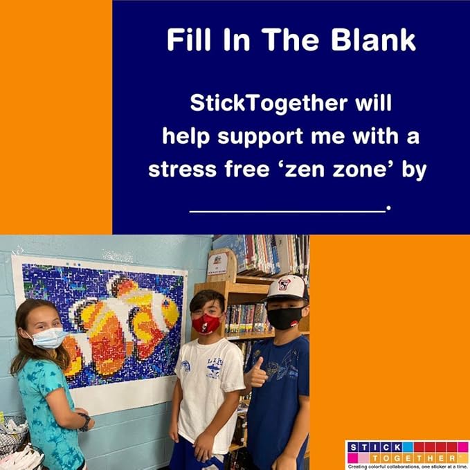 - ALL AGES / ALL ABILITIES / ALL OCCASIONS: StickTogether kits are perfect for any age (5-105) and all abilities - stickers do not have to go on perfectly! Ideal for inter-generational family time, community-building, a cumulative reward system, a homeschool activity or brain break, a rainy-day activity. A staple for Maker Spaces. StickTogether is also a popular inclusive activity with those with learning differences as well as those on the autism spectrum.