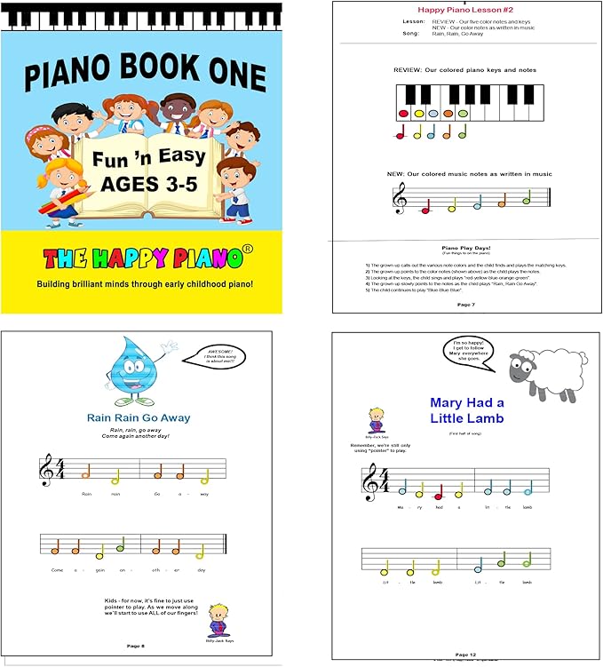 - WHY is this product HIGHER PRICED? 1 - We SPECIALIZE ONLY in the 3-5 yr old window of time. (This drastically reduces potential sales volume, compared to companies that sell books for all ages!) 2 - THIS is a KIT - NOT just a book! It has all you need (except a keyboard) for your childs's piano journey. 3 - This kit includes 2 amazing teaching videos, plus mp3s of lesson songs. 4 - BONUS DIGITAL BOOK TWO provided upon completetion of Book One. ( just email) 5 - We offer ongoing support, via email, text, or phone for parents who reach out to us. 6 - THE HAPPY PIANO is not just a book - it's an inspired, fun and exciting, proven "system" to teach piano to your child!