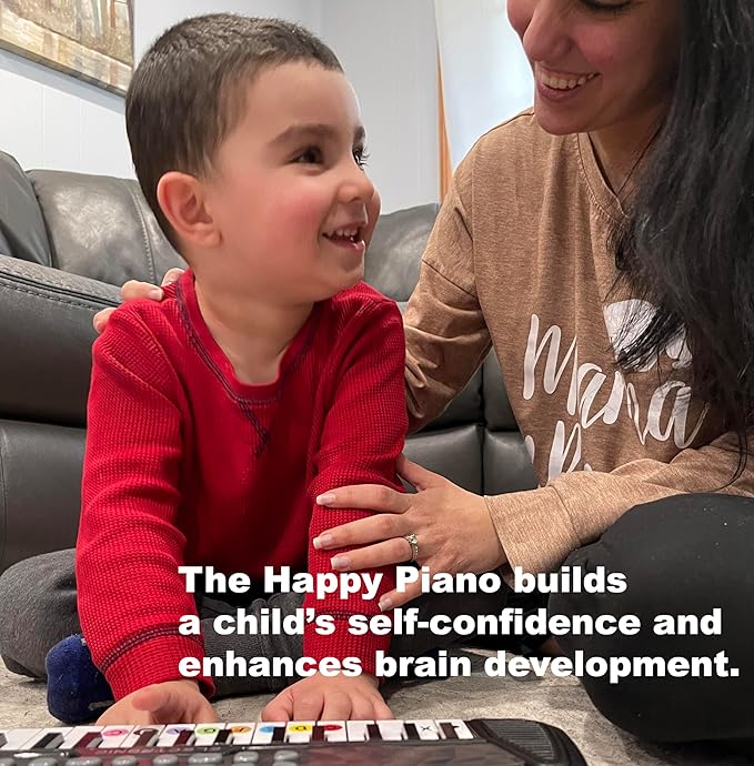 - BOOST your child's self-confidence! Think of the joy and pride your little one will feel, playing their favorite songs for you. It's not just a purchase, it's an investment in your child's future and a way for parents and grandparents to bond with kids through music! Previously only available in preschools, but now adapted for home use! JOIN 20K+ other Happy Piano kids!