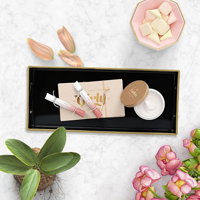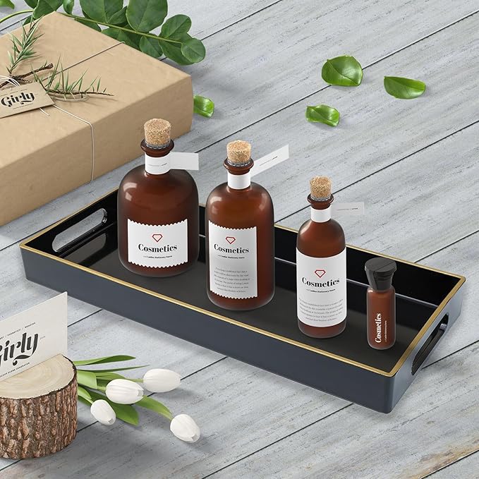 Leemxiiny Black Vanity Tray with Handles, Decorative Tray Desktop Storage Organizer for Bathroom, Living Room, 5.9"*13.7"