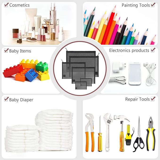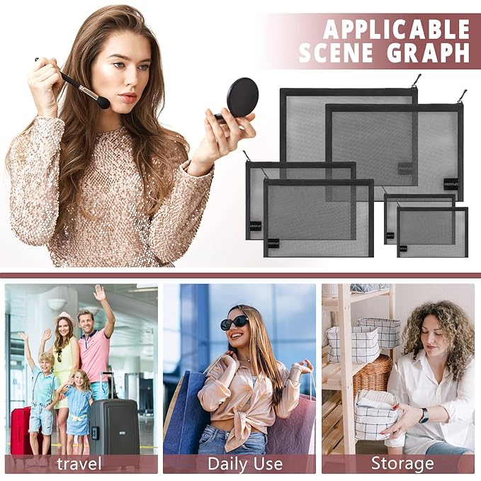 - 【APPLICATION】these black mesh bags can be applied as cosmetic bag, pencil case, coin purse and travel organizer bag and so on. Can store your cosmetics, like makeup brushes,lipstick or some daily items like keys, cards, electronic accessories, coins and so on. which can provide you with convenience in your daily life. Perfect for travel,vacation,business trip,gym,camping,shoping and outdoor activity, ect.