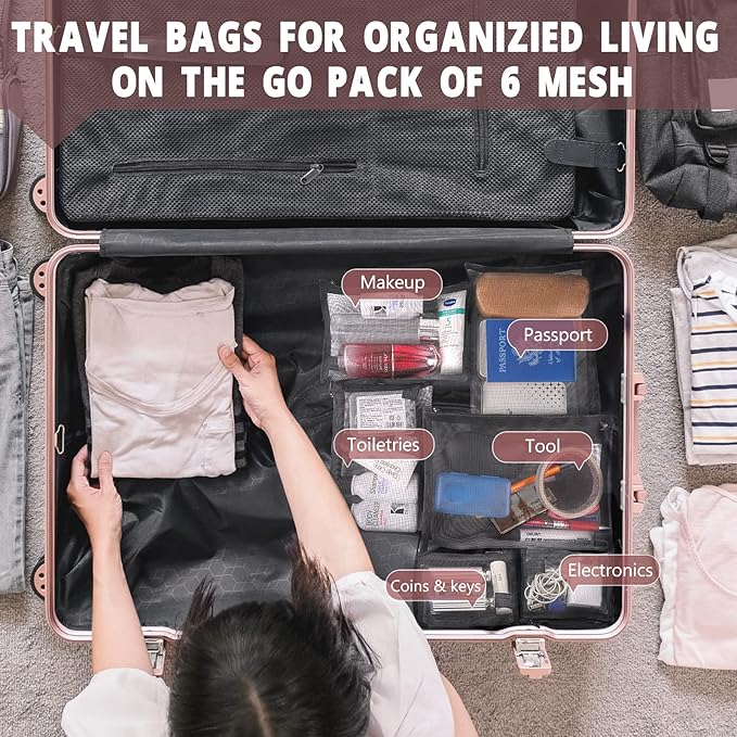 EASYFUN 6 Pieces Mesh Cosmetic Bag With Zipper Portable Travel Organizing Zipper Pouch Toiletries Makeup Pouches For Home Travel Accessories Diaper Bag