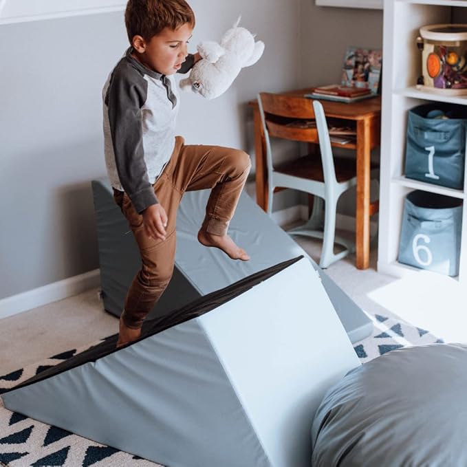 Foamnasium Mega Wedge Set, Indoor Foam Playset, 2 Piece Soft Toddler and Active Kids Play Foam Climber for Crawling, Climbing, Sliding and Jumping, Made in The US, Enhanced Snow