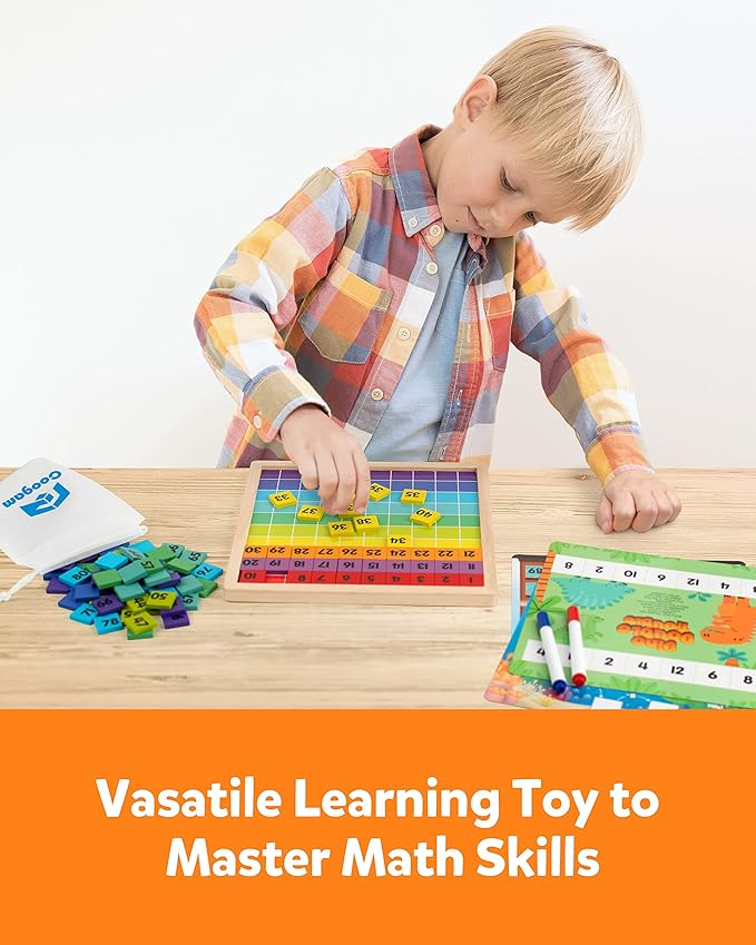 - Durable Quality Construction: All Coogam toys are meet the toy safety standard. Selected solid wood and harmless water paint, the high-quality wooden frame and wooden number tiles are sturdy enough for long-lasting use. Since they are small, the 100-number blocks are just the right size to maneuver smoothly while playing. And all activity cards are durable with a dry-erase surface that is wipe-clean and can draw repeatedly