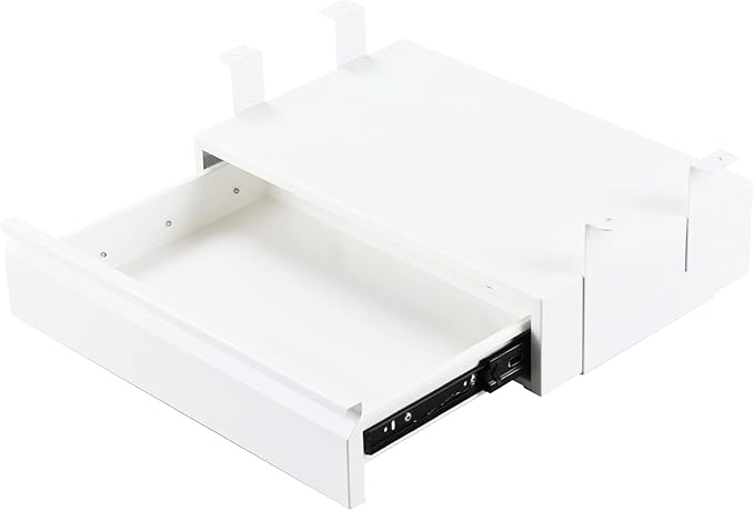 Under Desk Drawer 18", Pull-out Storage Organizer with Tall Brackets Mounted Under Wooden Table with a Max 2" Crossbar, White_Tall Version
