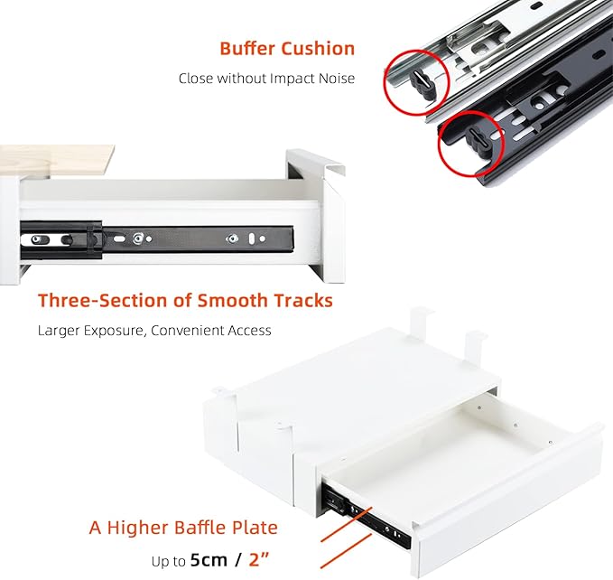 - Smooth and Silent: Three-section silent tracks with anti-collision buffer pads ensure the larger sliding extension and closing the drawer without impact noise. Great attachment unit for your work bench.