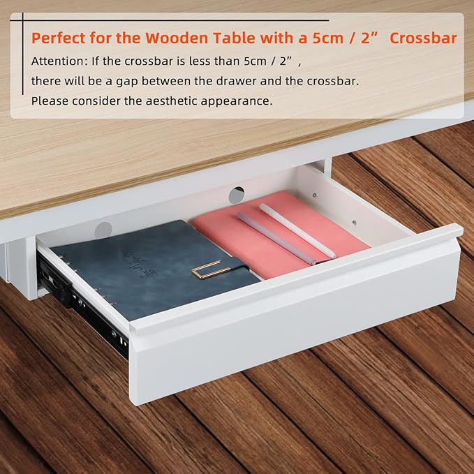 - Taller Brackets: Perfect for the underside of the wooden table with a 2" cross beam. Attention: If the crossbar is less than 2", there will be a gap over the drawer, and you can put some books, or other daily items in this gap. Please consider the aesthetic appearance before your purchase.