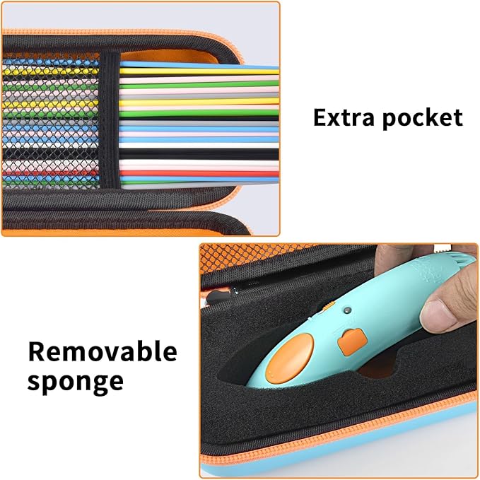 - For 3d doodler box with unique design: For 3doodler start organizer has a mesh pouch inside for 3doodler refills, micro-USB charger, and for 3d pen accessories. The zipper is sturdy and smooth, making it easy to open and close the hard box. For 3doodler case has a green appearance with an orange zipper, this unique color design echoes the color for 3Doodler Start+ Essentials for 3D pen, simple and beautiful.
