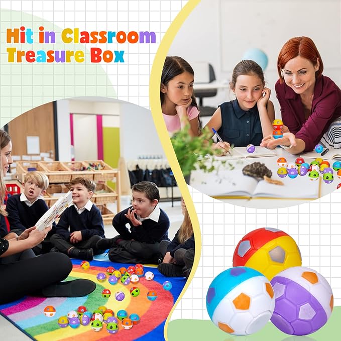 - 24 Pack of Color Blocked Fidget Soccer Balls: You will received 24 mini soccer balls in the box, each of which is a combination of two colors. The colors are bright, and multiple colors are randomly sent. It is a very cute and interesting small football shaped spinner. Children like to play. Perfect for kids as party favors