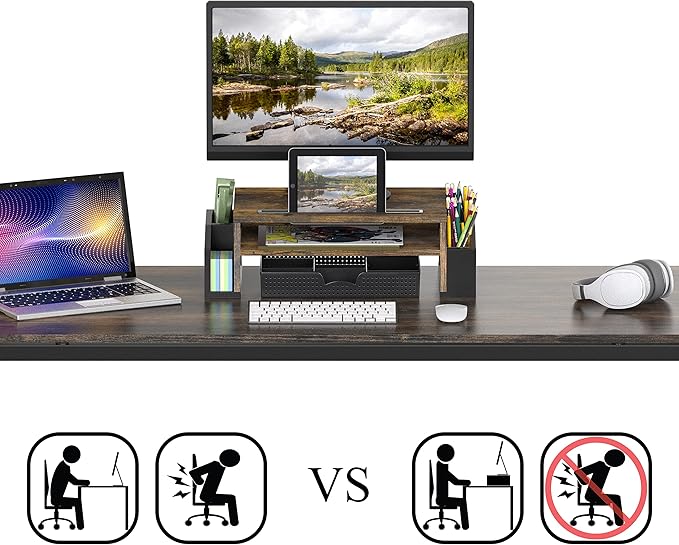 - 【Comfortable Viewing Height】Raises your monitor to a more natural eye level to help reduce neck and eye strain — supporting better posture during long hours of work.