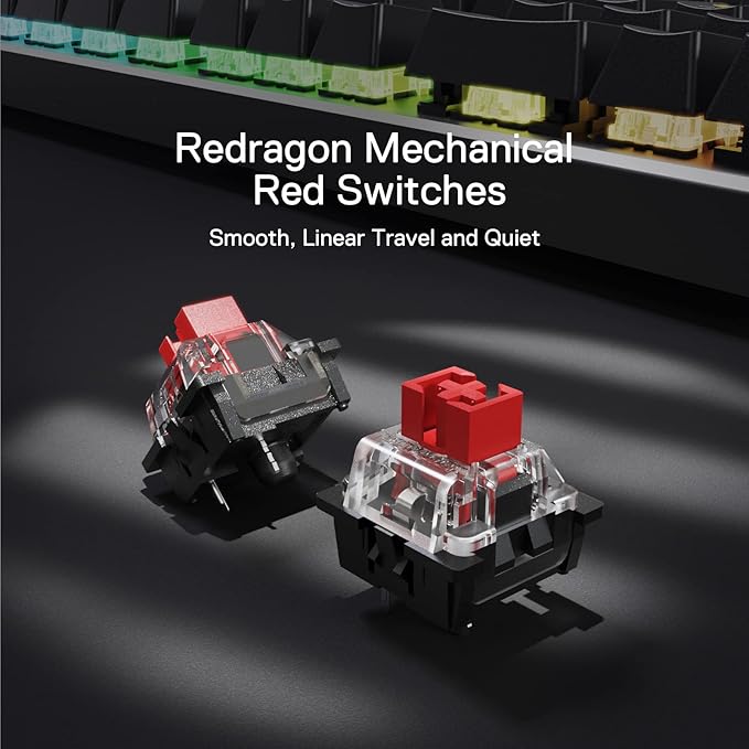 - Quiet+ Red Switches - Quiet basic linear mechanical switches, soft key travel makes every click easy to register. Along with 3.5mm sound absorbing foam, delivers a clear and crisp typing sound with no sick noise. Easy to update it with your wished switch, no forum researching is required.
