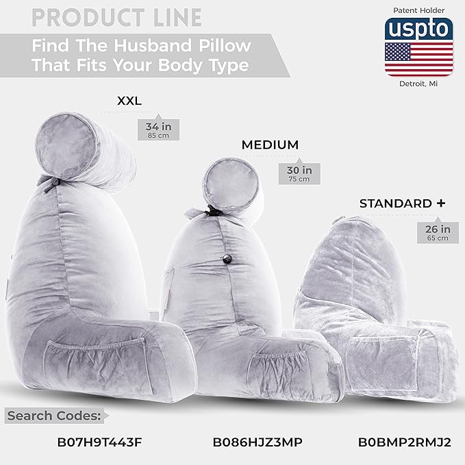 - Comfort Guarantee: The superior quality and workmanship of the husband pillow is backed by our promised to resolve all issues . This pillow is taller and wider than the leading backrest pillows available, measuring a generous 18 inches in height. In addition, we sell extra covers, should you ever want to change colors or replace the cover.