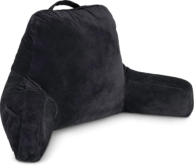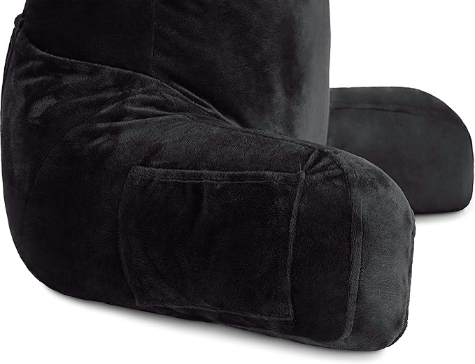 - Reading Pillow With Arms And Beyond: Smile...Knowing your money goes further, when you buy this ultra comfy support pillow with arms that includes two handy side pockets and rear pocket to boot to hold your remote, phone, a book or anything else you want close at hand while in bed.