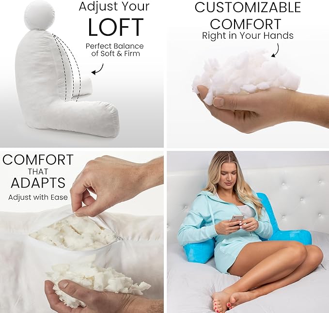 - Added features you’re going to love: we took our back pillows for sitting in bed to the next level! They’re equipped with a two handy side pockets and rear pocket to boot for storing phone, tablet, remotes, books, and what not while lounging, reading,relaxing, studying, working on laptop or watching tv
