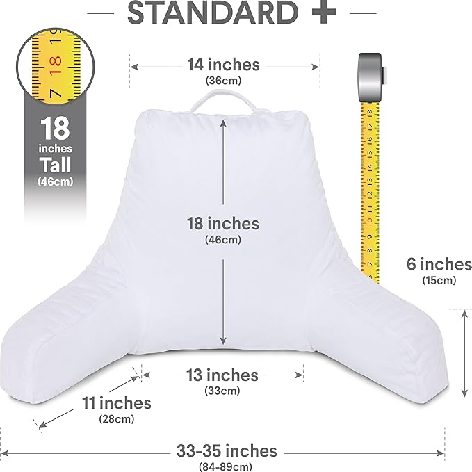 - Original standard+ reading & bed rest pillows :measure approximately 18 ” tall and 33” wide, our bed wedge pillow is bigger, soft, more plush and oh so so more comfortable . Delivers unparalleled comfort and support while reading, gaming, watching tv, or just lounging around.