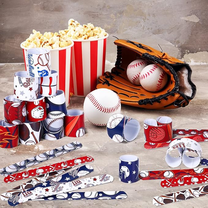Aoriher 72 Pcs Basketball Slap Bracelets Basketball Wristbands Bracelets Bulk for Basketball Party Favors Sport Themed Bracelet(Baseball)