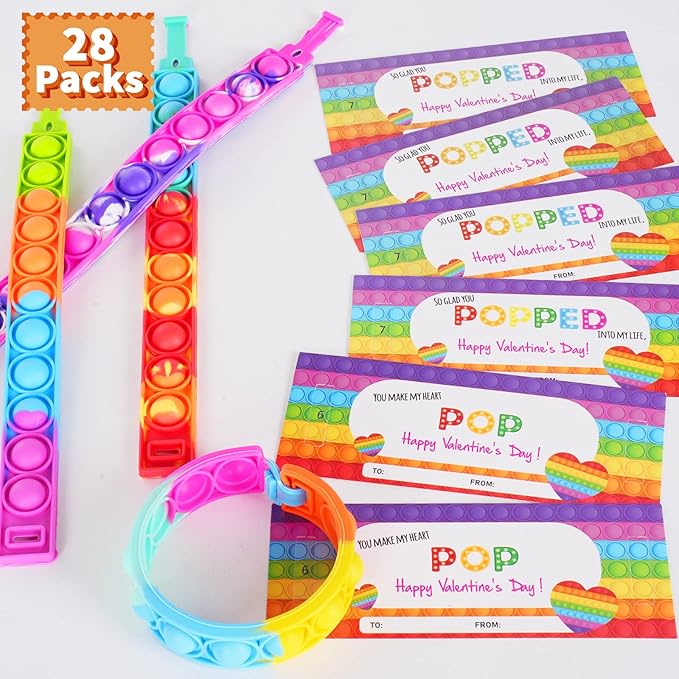 - ❤️Great Value – 28 Packs Valentine’s Day Gifts Cards with Push Pop Bubble Bracelet Toys,