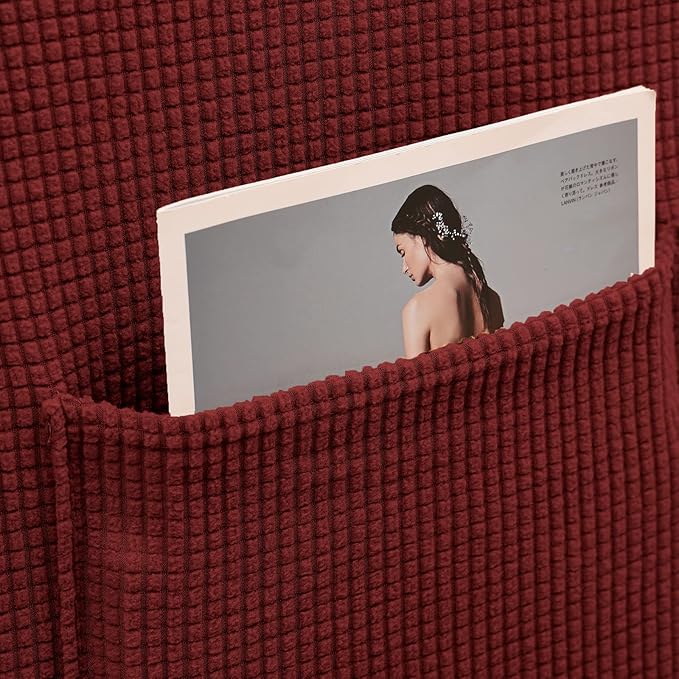 KEKUOU Recliner Chair Covers Lazy Boy Recliner Covers Stretch Couch Cover Slipcovers 1 Piece Furniture Protector with Elastic Bottom (Recliner, Dark Red)