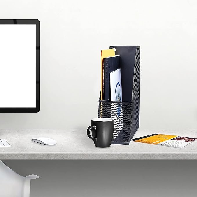 YBM HOME Steel Mesh Wall Magazine File Holder for Home & Office Organization, Serves as a Magazine Rack, Desk Organizer, Letter and Mail Bin, Holds Up to 20 Magazines - 12-Pack Black, 1101-12