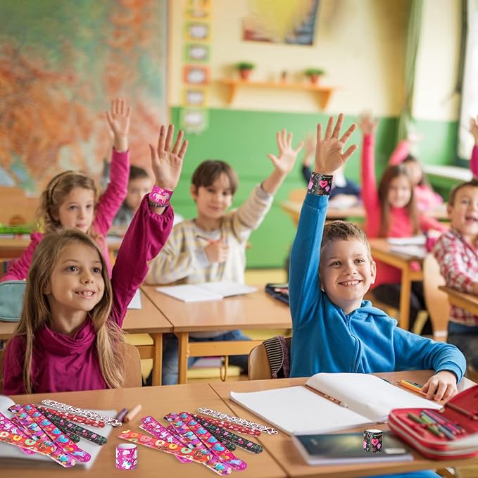 - 【Valentine’s Day Party Favors for Kids】The slap bracelets are ideal for Valentine’s Day Scene and Decoration, Valentine’s Day Parties Prizes, Valentine’s Day Prizes, Valentine’s Day giveaways, Valentine’s Day Goodies, Valentine’s Day Toys, Gift, School event, Game prize, School, Valentine’s Day Favors, Valentine’s Day Gift, Miniature Valentine’s Day, Miniature Novelty Toys, Valentine’s Day Goody Bag Fillers, and Valentine’s Day Novelty Toys.