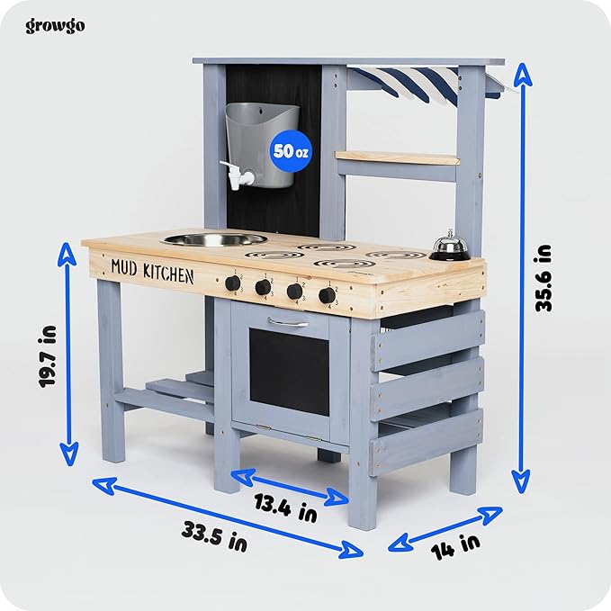 - 2 IN 1 - This double-sided stand acts as a wooden kitchen/toy grocery store! Montessori-inspired, this durable & sturdy outdoor kitchen allows kids age 3+ to play house, teaching useful everyday skills.