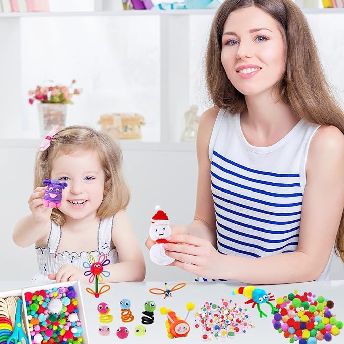- Kids Arts and Crafts Supplies for Kids Girls Ultimate Crafting Supply Set in Portable 3 Layered Plastic Art Box Included Pipe Cleaners, Pom Poms, Feather, Folding Storage Box - All in One for Craft DIY Art Supplies