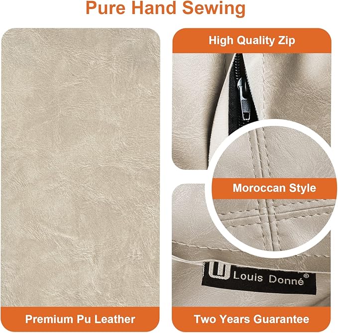 - 🥰ECO-FRIENDLY and RECYCLABLE: Louis Donné pouf uses PU leather -- faux leather. Fur free. And it is unstuffed, so you can recycle, reuse, and stuff it with old towels, poly fill, bubble pack, cotton batting, fabric remnants, towels, blankets, used clothes, cushion, pillow, etc. Go Green with the Louis Donné.