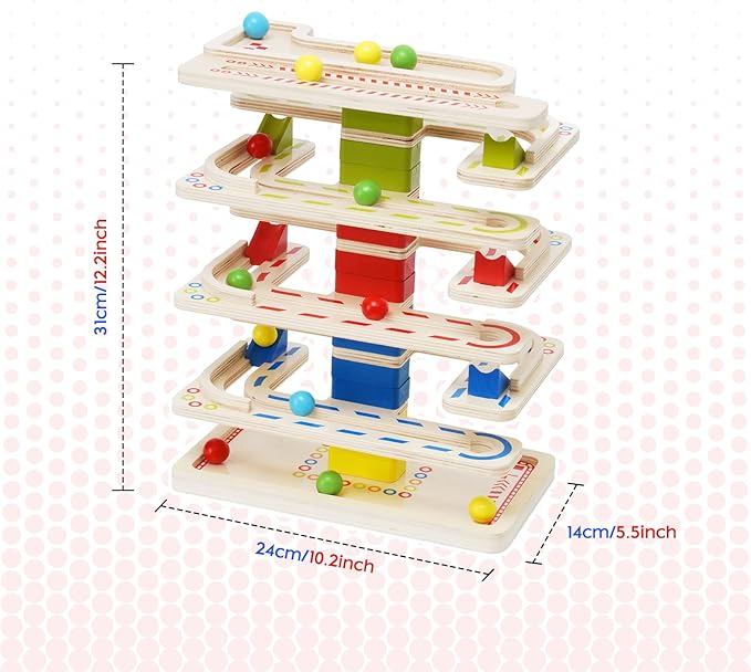 - BEST GIFT FOR CHILDREN --- The colorful and cute wooden ramp toy is a perfect choice as a birthday gift, Christmas gift for 1 2 3 4 5 6 years old boy and girl! 8 continuous race tracks and 16 balls with 4 different colors are enough for your kids and their partners to play together at the party, which can stimulate children's curiosity and the joy of exploration.