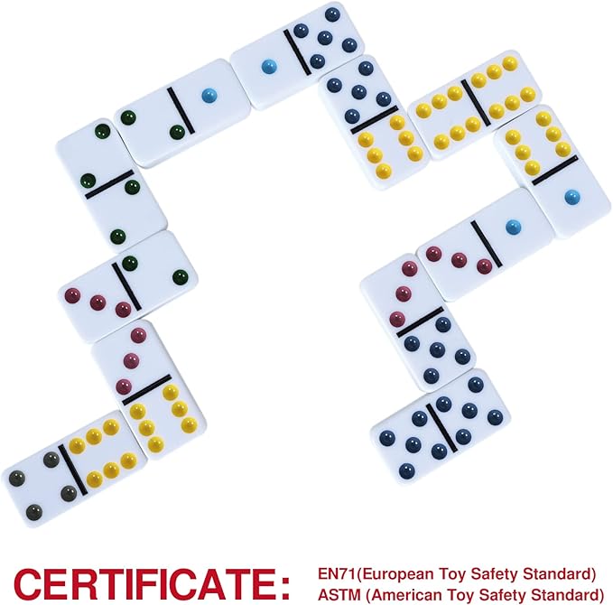 - 【Safe and Durable】: This double 6 dominoes set is decorated with high-quality color ink dots eco-friendly, and won't fade any time soon to provide you with long-term use. They are made from non-toxic materials, ensuring the safety of both children and adults