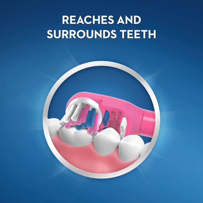 - Raised center-row bristles help clean chewing surfaces