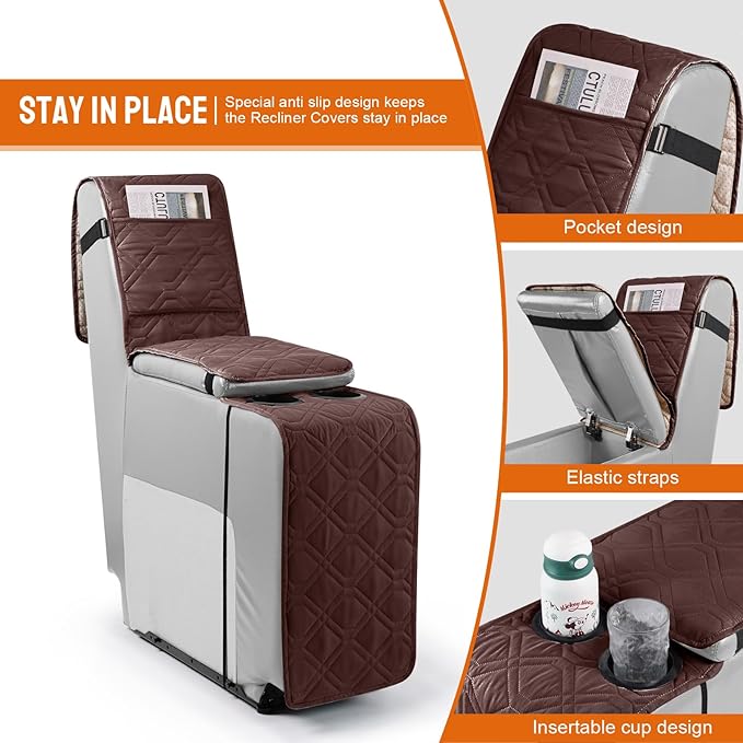VANSOFY Loveseat Recliner Cover with Console 100% Waterproof Sofa Slipcovers Non-Slip Reclining Couch Cover Split Sofa Covers Furniture Protector for Pets, Dogs(Console Cover,Coffee)