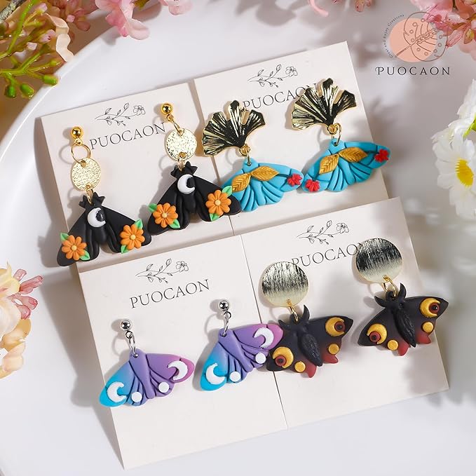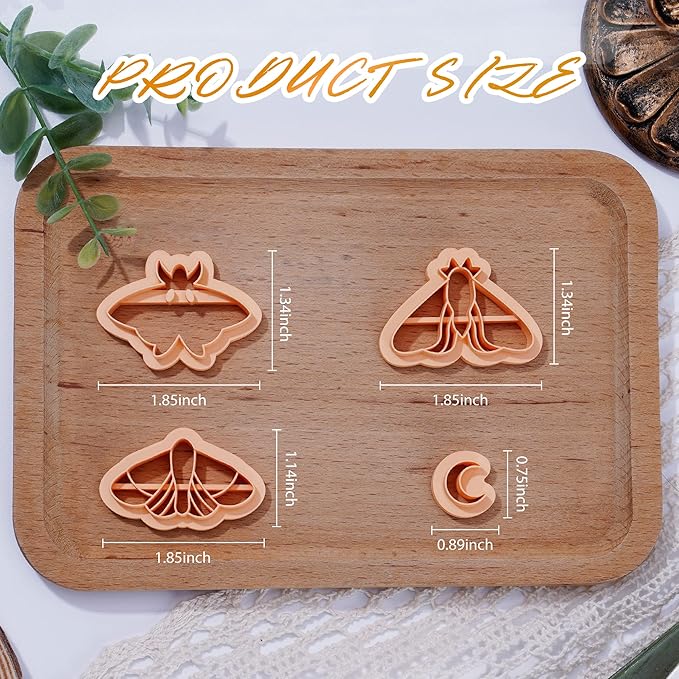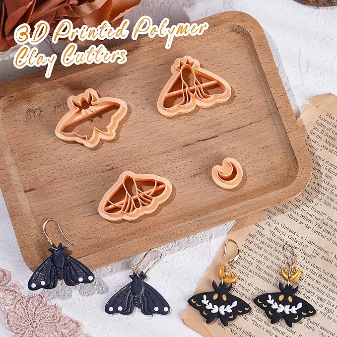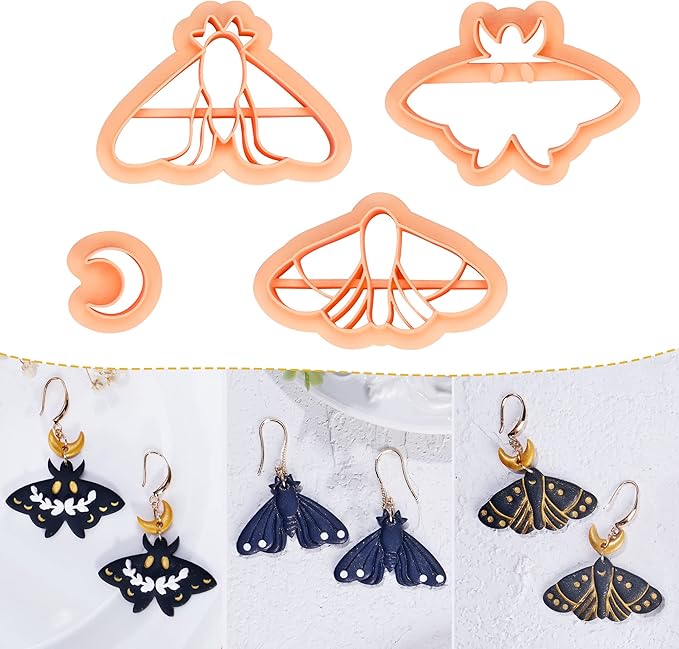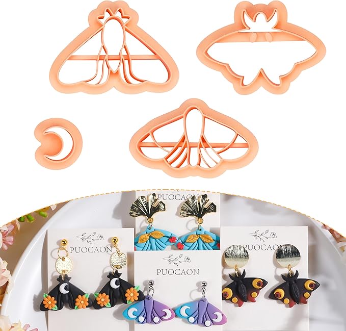 - [Moth Shape Polymer Clay Cutters]: Puocaon moth shapes polymer clay cutters set for earrings making. These clay earring cutters set include 3 hollow moth shape cutters and 1 small moon shape cutter.
