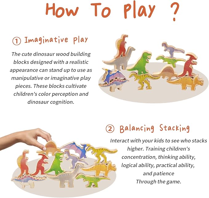 - Fun and Educational: Stacking is so much fun for little ones. Stacking toys is another great way for your child to know different dinosaurs and shapes. The set is suitable for stacking up and knocking back down, as well as use as manipulatives or imaginative play