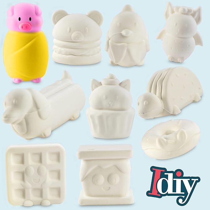 Jumbo Food Animal Squishies (10 Shapes w 12 Fabric Paints) -White Kawaii Scented Slow Rising Squishy Toys, Decorating, Scented Stress Relief Craft, Kids School, Birthday Party Activity Gift(4"-6")