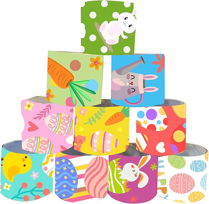 - 【Slap Bracelet Bulk】These slap bracelets with the Easter elements are perfect for holiday party and can easily navigate any party .Easy to wear, just tap the bracelet on your wrist and it will form a comfortable tight grip to fit your wrist size, suitable for everyone.