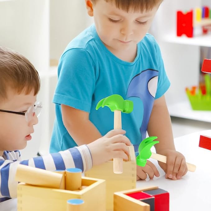 2 Pack Wooden Hammer Toys Simulation Hammers Maintenance Tools Educational Toys for Kids Birthday Party Games Supplies (Green)