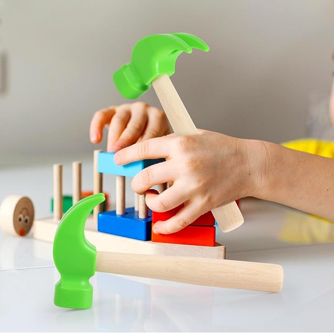 - Size: The package includes 2pcs green wooden hammer toys, each wooden hammer size is 6.5 x 3 inch, comact size and lightweight, suitable for kids to play and convenient to carry.