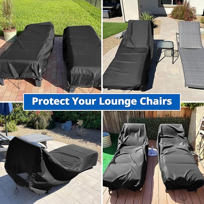 SunPatio Waterproof Outdoor Chaise Lounge Cover , 2 Pack Patio Lounge Chair Covers with Windproof Buckle Straps, UV & Rip & Fade Resistant, All Weather Protection, 80"L x 30"W x 26"H, Black