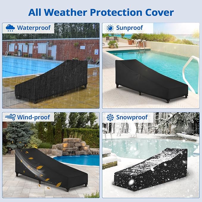 - ►Waterproof Construction: Double stitching seams with waterproof sealed tape at critical seams, prevents the rain from penetrating through stitching holes of the seams, keeping your outdoor chaise lounge dry and ready to use.