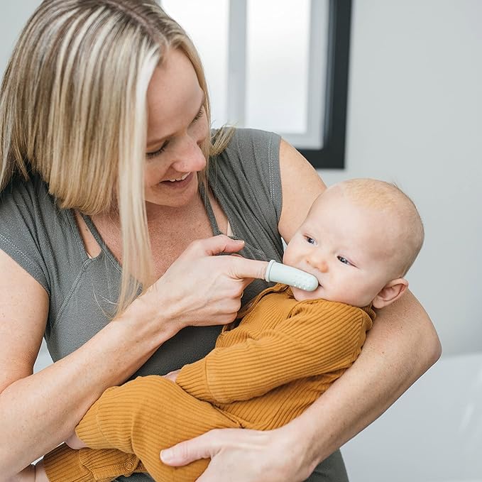 - SILICONE FINGER TOOTHBRUSH 3M+. Teach baby healthy oral hygiene habits with the soft, 100% silicone toothbrush.