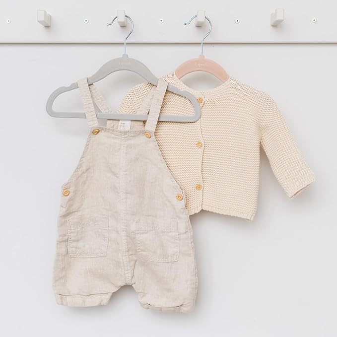 - ⭐️ 𝗦𝗧𝗬𝗟𝗜𝗦𝗛 𝗦𝗣𝗔𝗖𝗘 𝗦𝗔𝗩𝗘𝗥: Maximize closet space with the slim profile of 3 Sprouts Velvet Kids & Toddler Hangers, designed for easy organization and quick access to your little one's clothes; available in soft & modern nordic colors to effortlessly blend with your nursery décor, these hangers bring both style and functionality to reflect your baby's calm, gentle environment.