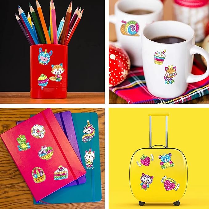 - Safe material: Diamond Mosaic Sticker Kits made of quality resin material, non-toxic, odorless, and will never fade; Once the craft is complete, some of people will love putting their gem diamond stickers on phones, laptops, notebooks, lunch box, or anywhere they want
