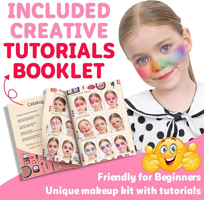 - 【Mess-free & Easy to Store】: This is a compact pink makeup set for girls, all the items come packed in a neat carrying case for easy storage. There are fixed colors in the cosmetic case, children can see all the colors at a glance so that they can choose favourite color, and it's not easy to lose and avoid breaking during carrying.