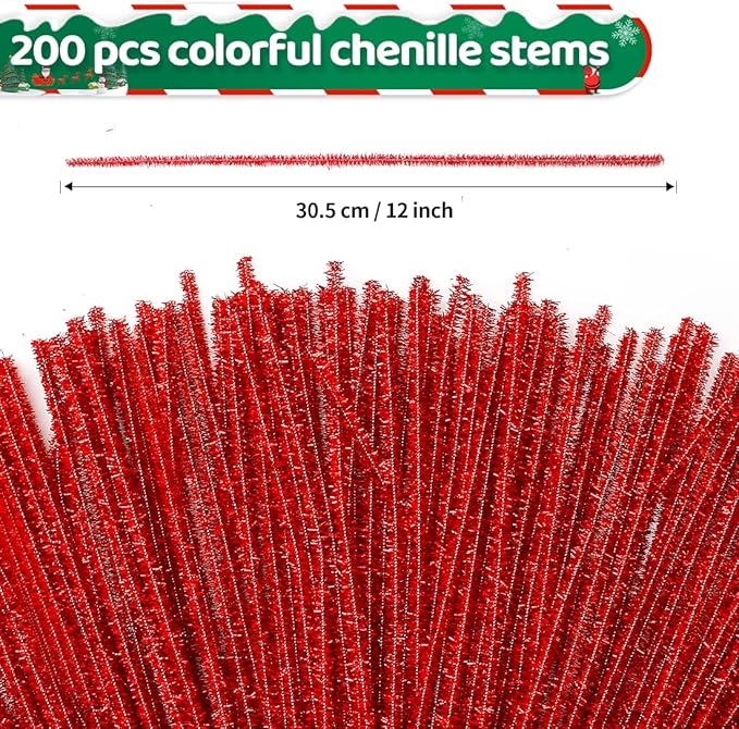 - You Will Get: 200 pieces of glitter red chenille stems,exquisitely packaged. L×W×H:12*3*1 in. Available in a variety of colors, our pipe cleaners are sure to add a touch of whimsy to any project and create something that brings vitality to your life