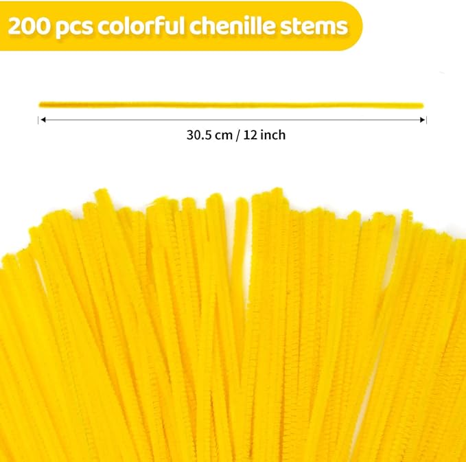 - You Will Get: 200 pieces of yellow chenille stems,exquisitely packaged. L×W×H:12*3*1 in. Available in a variety of colors, our pipe cleaners are sure to add a touch of whimsy to any project and create something that brings vitality to your life