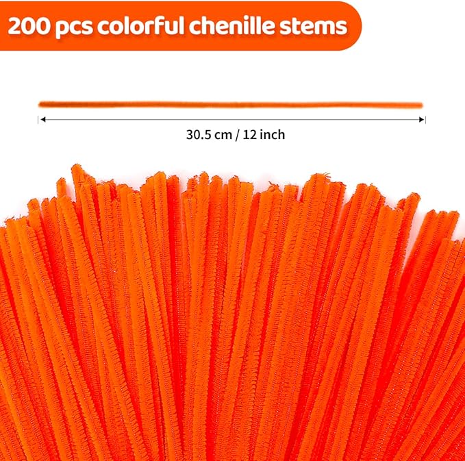 - You Will Get: 200 pieces of orange chenille stems,exquisitely packaged. L×W×H:12*3*1 in. Available in a variety of colors, our pipe cleaners are sure to add a touch of whimsy to any project and create something that brings vitality to your life