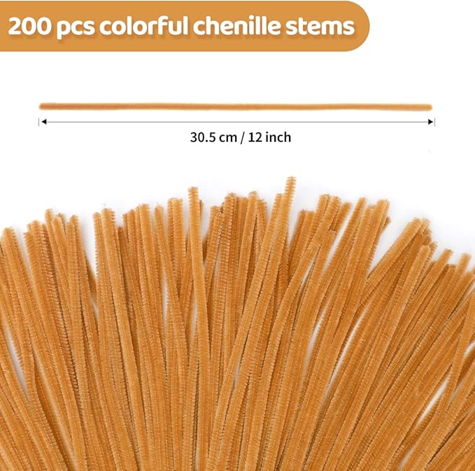 - You Will Get: 200 pieces of light coffee chenille stems,exquisitely packaged. L×W×H:12*3*1 in. Available in a variety of colors, our pipe cleaners are sure to add a touch of whimsy to any project and create something that brings vitality to your life