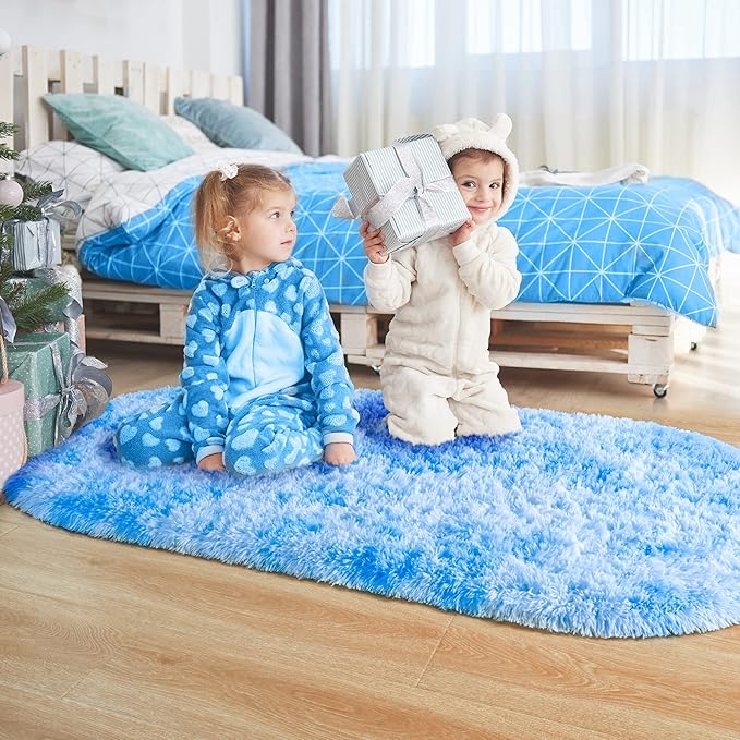 Noahas Oval Fluffy Blue Rainbow Rug 2.6X5.3 Small Kids Rugs for Bedroom Girls And Boys Aesthetic,Bedside Bedroom Rug,Ultra Soft Runner Carpet Modern Shaggy Nursery Area Rugs Home D飯r