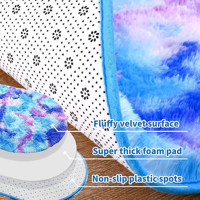- Unique Style Rainbow Rug:The soft kids rugs for bedroom girls showcases a beautiful and bold color design.The fluffy rug surface is covered with 1.7" velvet faux plush high pile for warmth and beauty.The shag rug bright colors and plush appearance are perfect for a child's room.Let your kids and pets have fun on the cold floor!